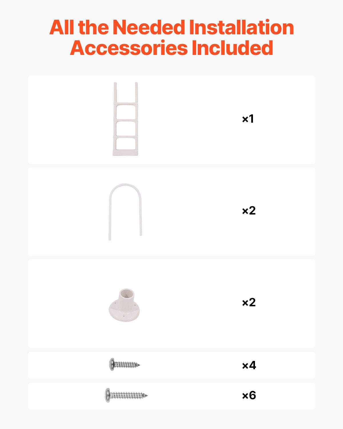 Pålitlig 300 lbs viktkapacitet: Detta poolsteg stöder upp till 300 lbs, vilket ger en säker och stabil in- och utgång för både barn och vuxna. Den flänsförsedda installationen säkerställer en stadig och hållbar installation