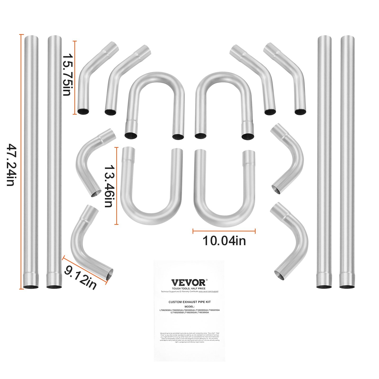 Komplett avgassats: Denna avgasrörsats innehåller totalt 16 rör med en 2,5-tums diameter, med 4 raka rör, 4 90°-rör, 4 45°-rör och 4 U-formade rör. Denna uppsättning är designad för att ge dig flexibiliteten att helt anpassa ditt avgassystem för maximal effektivitet.