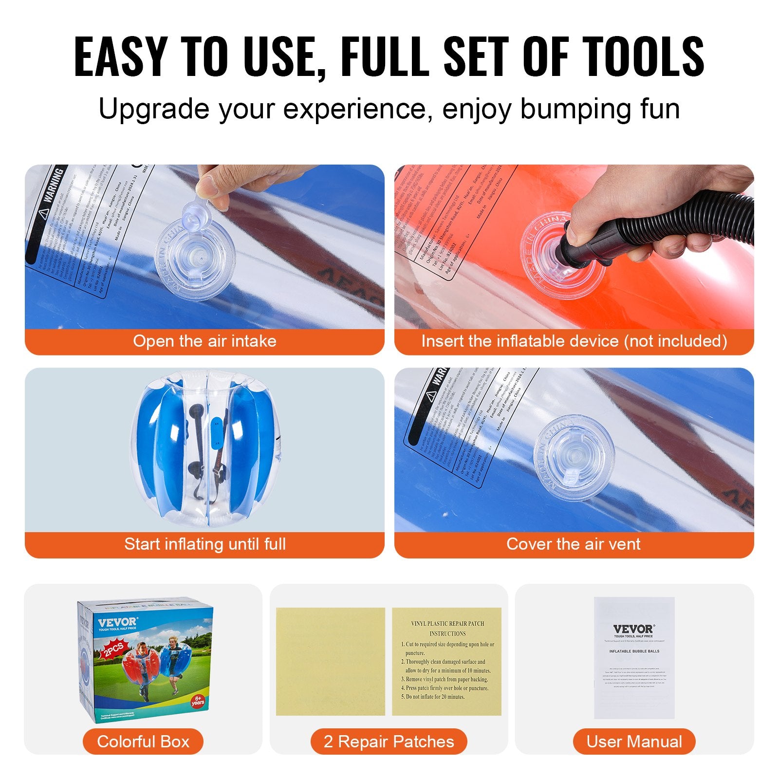 Uppblåsbara Bumper Balls 2-pack, 3FT/0,9M Body Sumo Zorb Balls för barn och tonåringar, hållbara PVC Human Hamster Bubble Balls för utomhusspel för lagspel, Bumper Bopper Leksaker för lekplats, trädgård, park