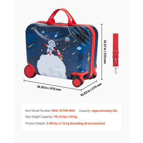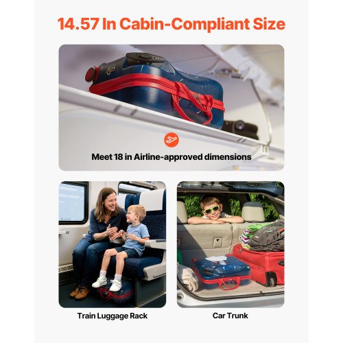 Smidig rörelse: De 2,21 tum stora framhjulen på vårt handbagage ger enkel manövrering, medan de 3,47 tum stora bakhjulen ger stabilitet. TPR- och PP-materialet minskar stötar och stötar, vilket gör ditt barns åktur smidig och bekväm.