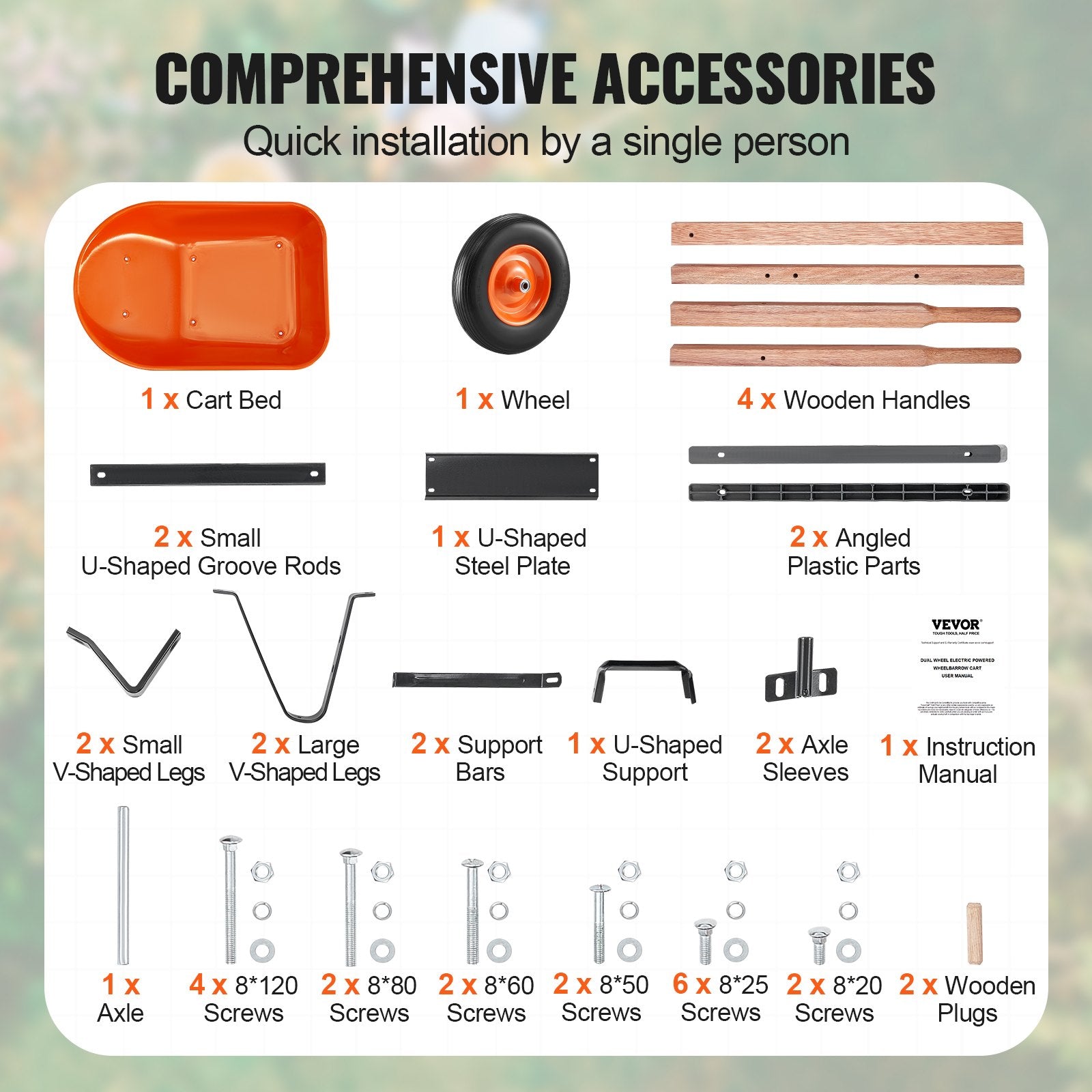 Enkel montering och förvaring: Utrustad med en detaljerad instruktionsguide och ett komplett skruvsats, kan denna trädgårdsdumpvagn snabbt monteras med enkla verktyg som en skiftnyckel och skruvmejsel (verktyg ingår ej).
