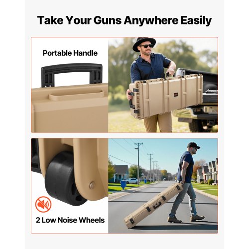 Bärbar och enkel att flytta: Utrustad med två tysta hjul kan denna hårda vapenväska enkelt transporteras i offentliga utrymmen, vilket minimerar störningar. Flera ergonomiska handtag gör det enkelt att lyfta och bära, vilket ger maximal flexibilitet och bekvämlighet.