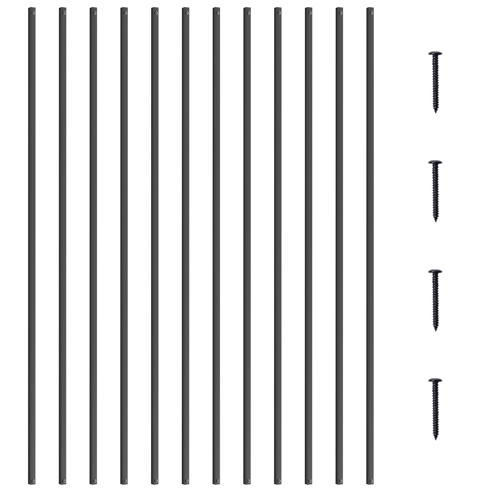 Staircase Metal Balusters, 44'' x 0,5'' Fyrkantiga aluminiumlegering dekorativa räckespindlar, 31-pack Däck Baluster med skruvar, Klassiskt ihåligt rakt däcksräcke Satin Black Pulverlackerad
