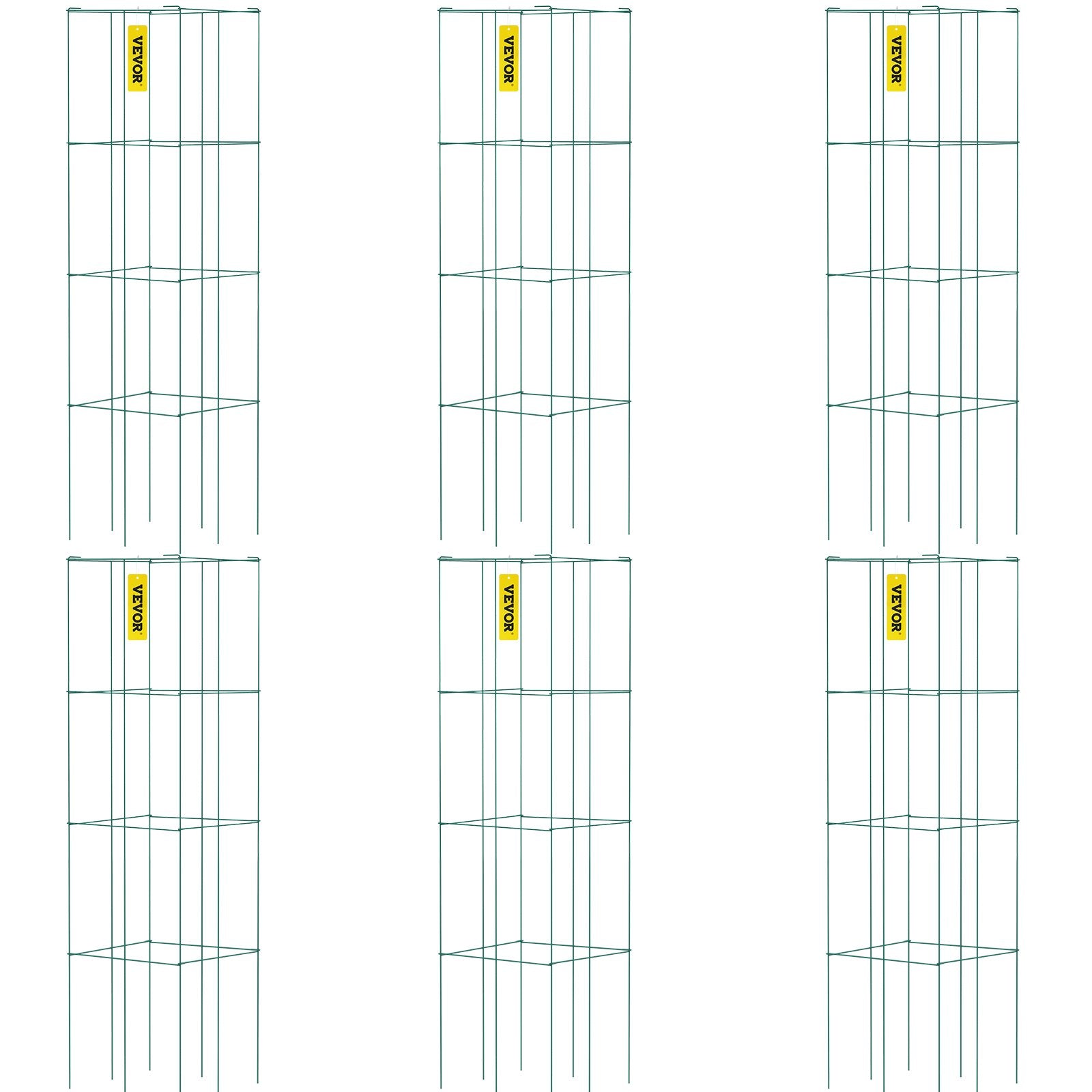 Tomatburar, 14,6" x 14,6" x 39,4", 6-pack fyrkantiga växtstödburar, gröna PVC-belagda tomattorn i stål för klättring i grönsaker, växter, blommor, frukter
