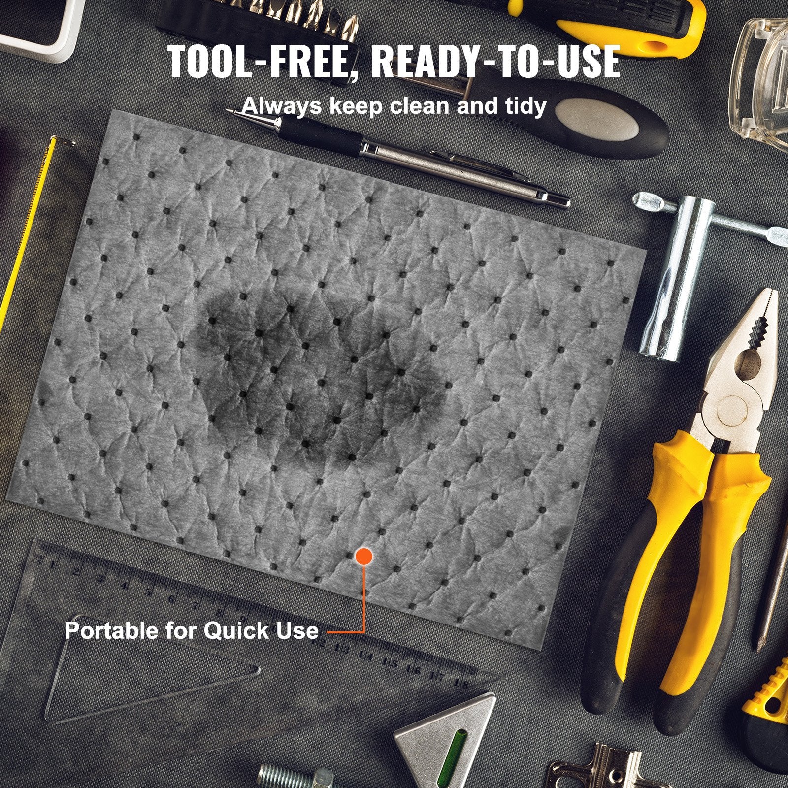 Grundligt förebyggande av spill: Våra oljeabsorberande kuddar är tillverkade av tjocka material och en unik design och absorberar omedelbart olika oavsiktliga spill, håller omgivningen ren och snygg och gör ditt arbete och liv bekvämare.