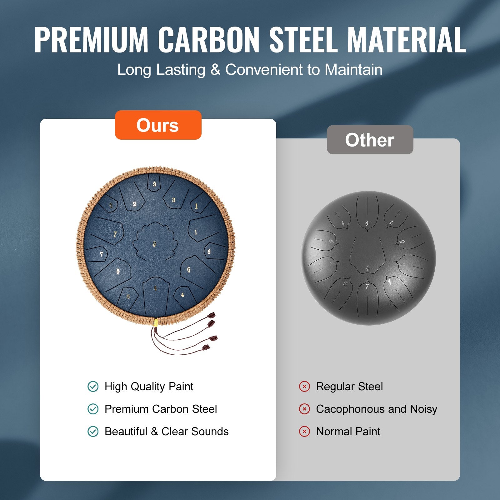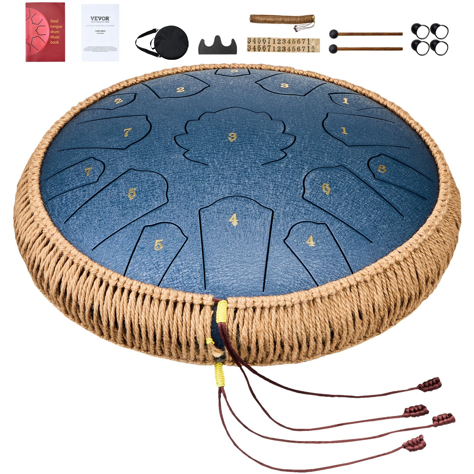 Handgjord ståltungtrumma: Denna ståltungtrumma med 15 toner och D-nyckeldesign låter dig spela komplexa låtar och lugnande harmonier. Uppgraderad avstämningsteknik gör den 14-tums ståltungtrumman lämplig för både professionell prestanda och nybörjare att använda.