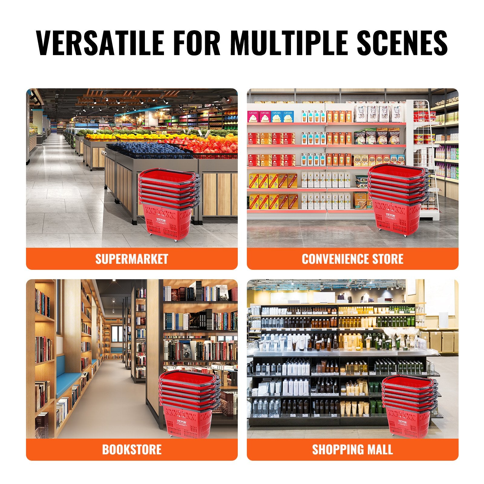 Stor kapacitet: Storleken på 21,26 x 20,87 x 14,37 tum, vår varukorg med kapacitet på 39 L tar bort stressen med att bära dina varor. Perfekt för familjer, den rymmer en veckas shopping och kommer i ett set om 6 för enkel delning, lämplig för förvaring av frukt, grönsaker, schampo och olika matvaror.