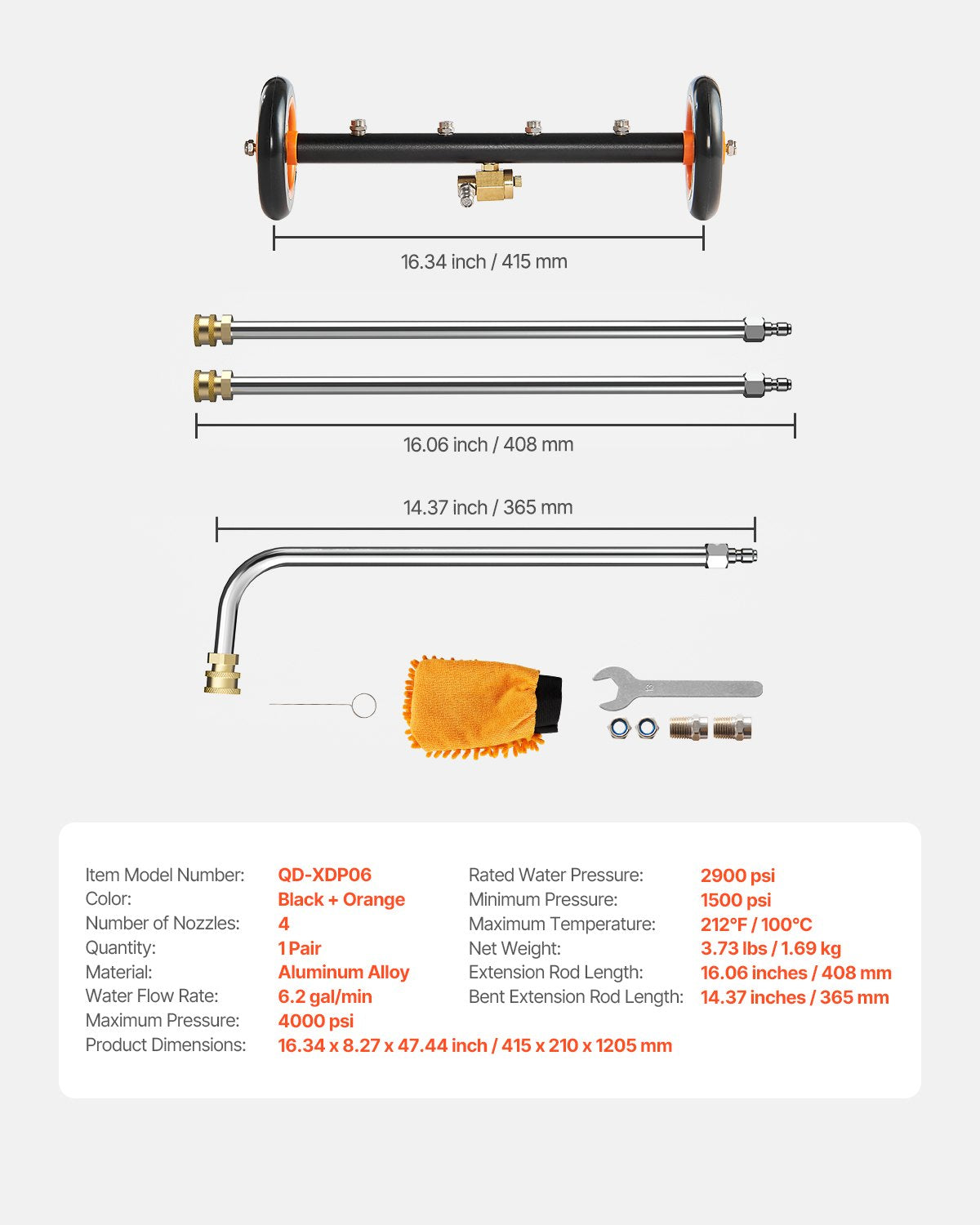 16" högtryckstvätt underredesrengörare med 2 hjul 2 förlängda stavar