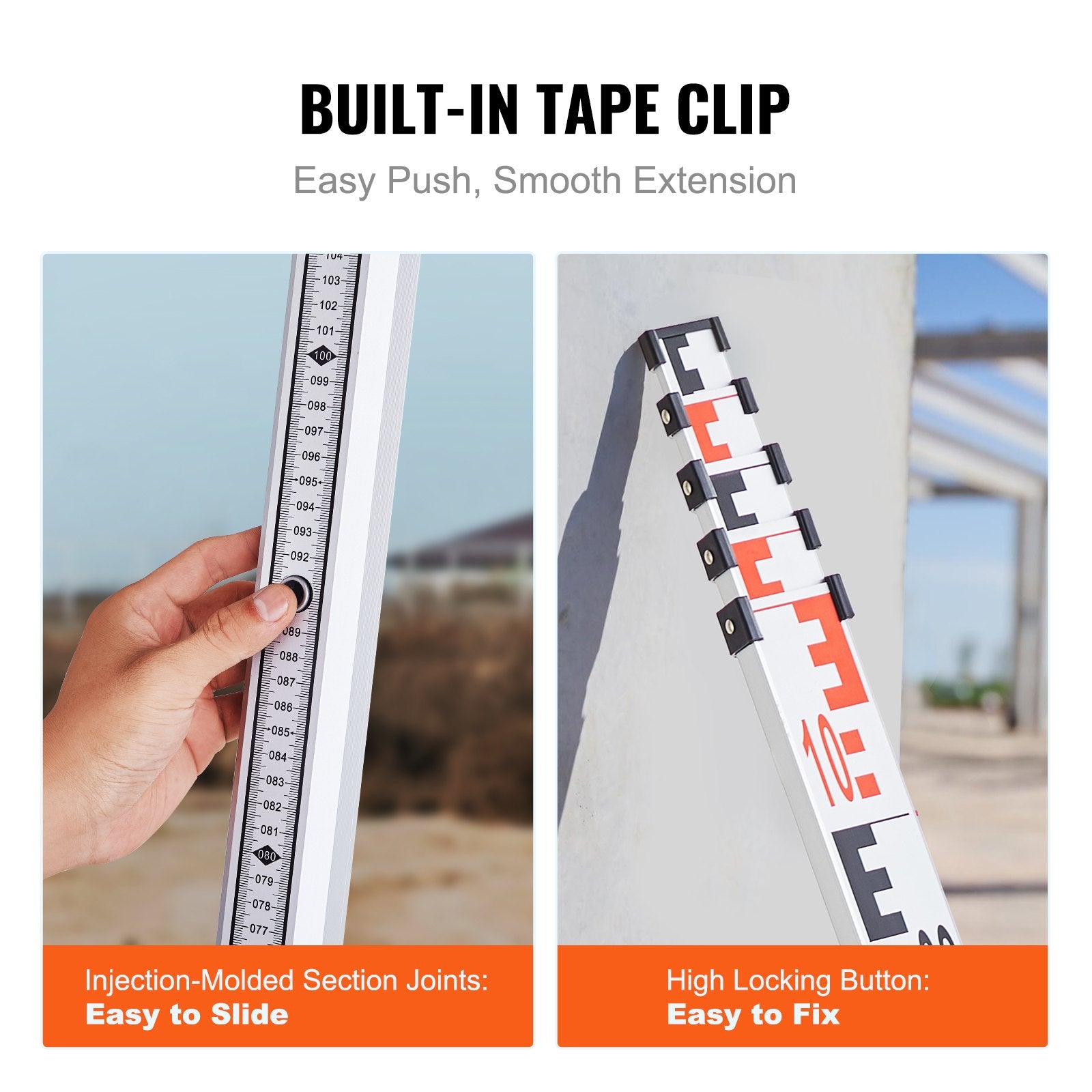 Användarvänlig design: Inkluderar formsprutade sektionsfogar och höghållfasta låsknappar för stabilitet, tillsammans med en bubbelnivå för ökad noggrannhet. Levereras med en slitstark mjuk bärväska för bekväm förvaring och transport.