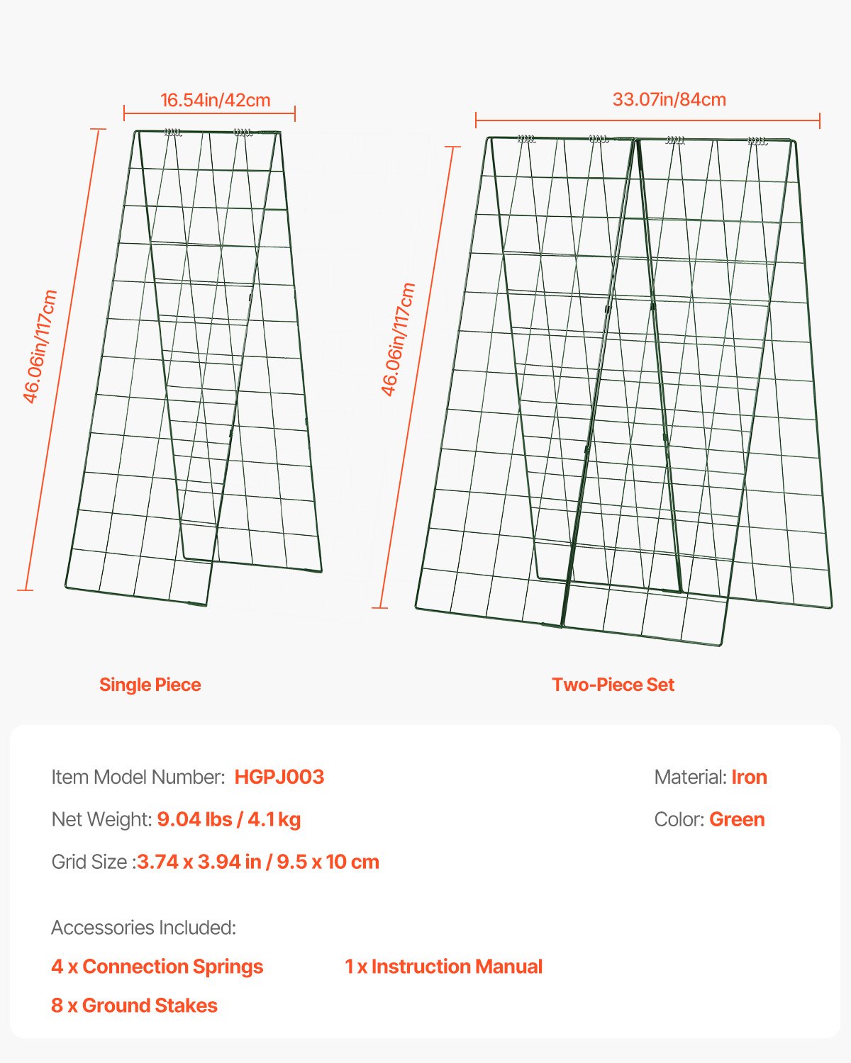 Mångsidig tillämpning: Idealisk för gårdar, trädgårdar och uteplatser, denna metallväxtstödspaljé ger starkt stöd för gurkor, tomater, ärtor, zucchini eller andra vinväxter.