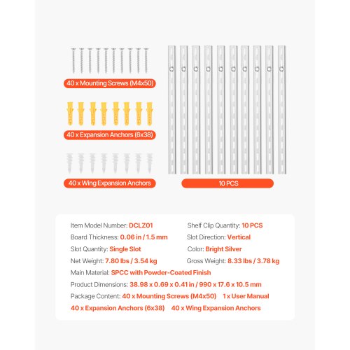 Snabb och enkel montering: Med en steg-för-steg-manual och medföljande verktyg har du ditt justerbara hyllskenesystem uppe på nolltid – ingen erfarenhet eller extra hårdvara behövs.