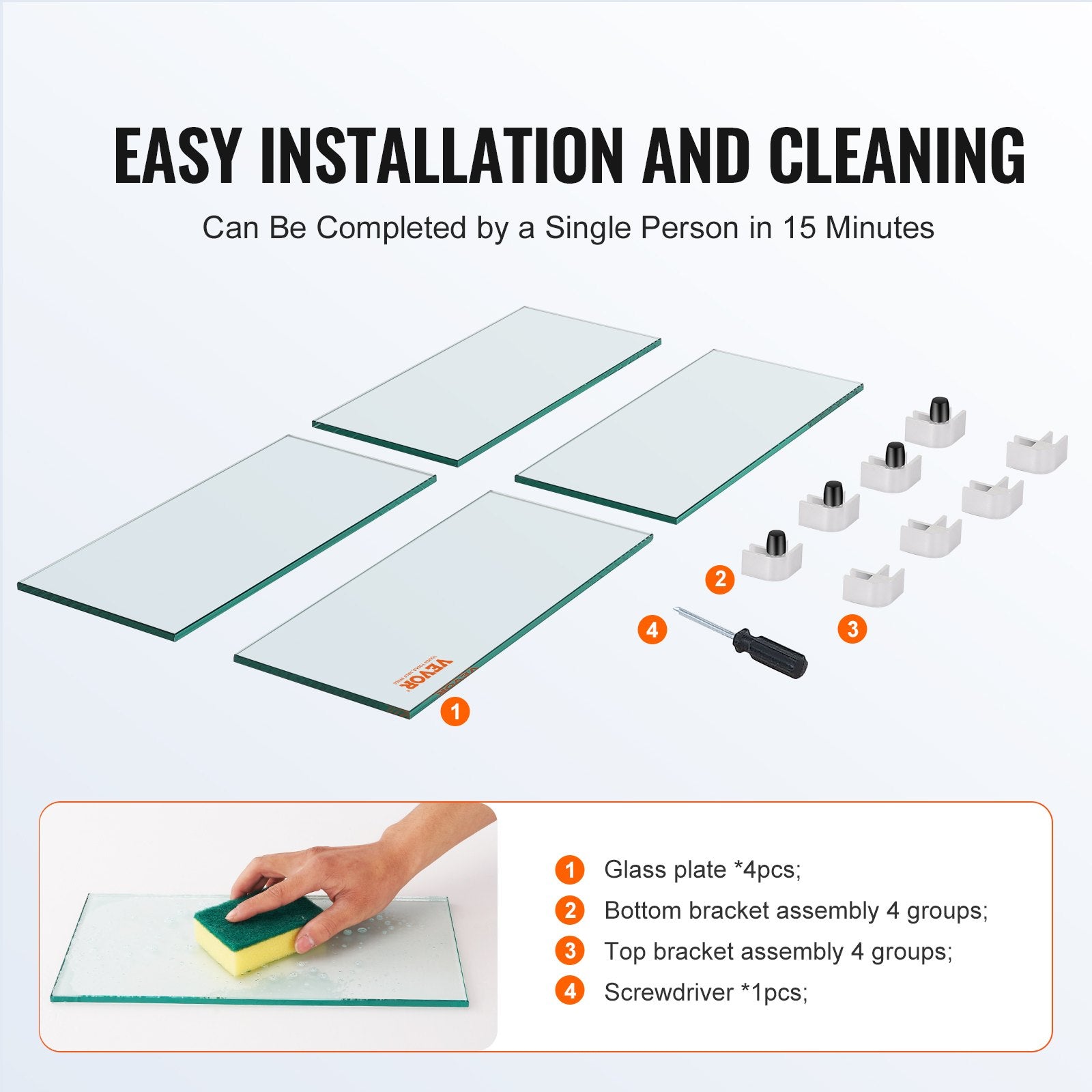 Robust och hållbar: Vårt eldstadsvindskydd är konstruerat med fyra härdat glaspaneler, var och en 0,31''/8 mm tjock, erbjuder hög hårdhet och värmebeständighet samtidigt som de är mindre benägna att gå sönder. Kontakterna är gjorda av aluminiumlegeringsmaterial, vilket ger styrka, stabilitet och säker installation för att förhindra att vindskyddet lossnar eller faller av.