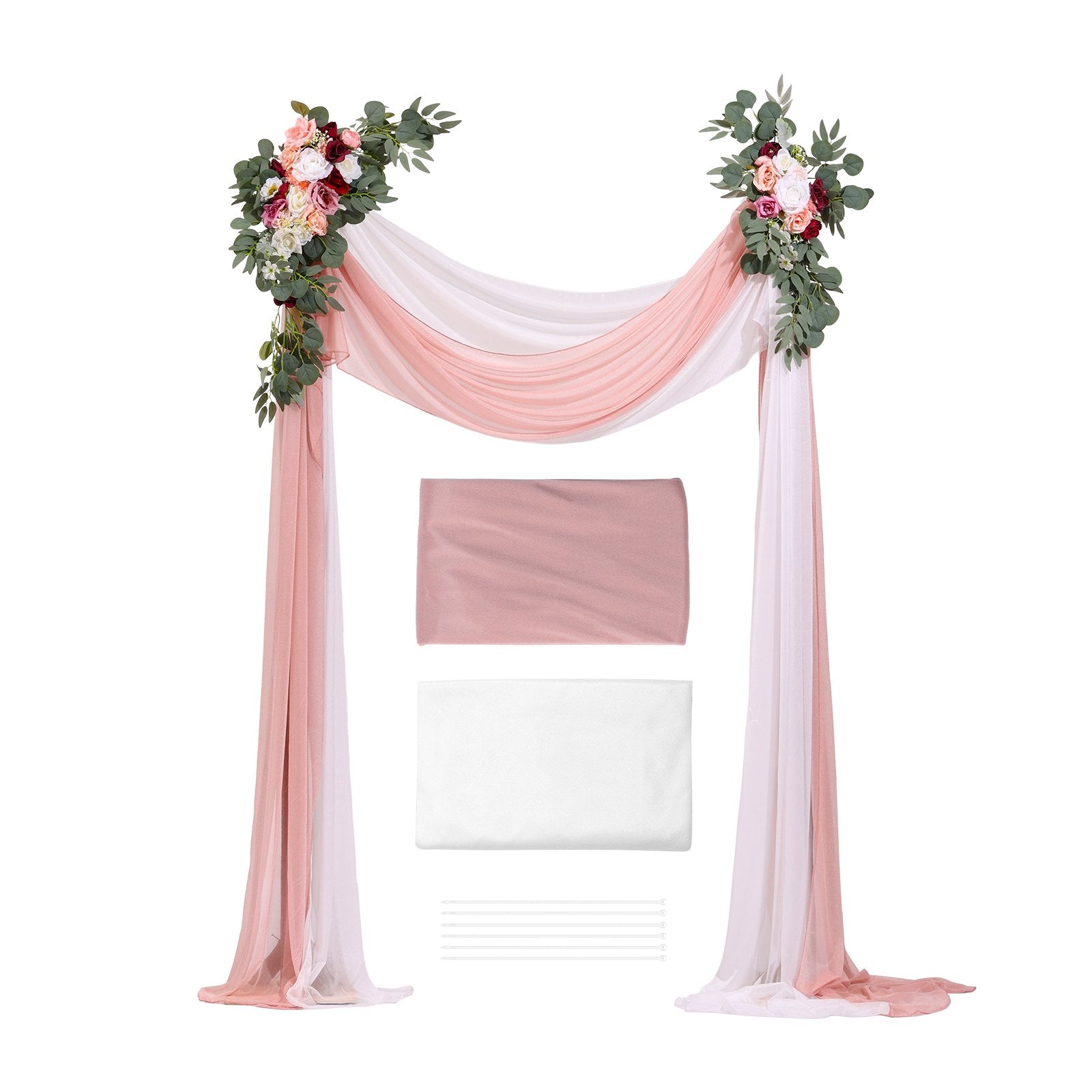 Genomskinligt tyg: Vårt konstgjorda bröllopsbågblommorskit innehåller premiumdraperier gjorda av skrynkelbeständigt tyg. Detta är ett mer elegant alternativ än tyll eller nylon. Tvättbar och lätt, den skapar en mjuk, eterisk look.