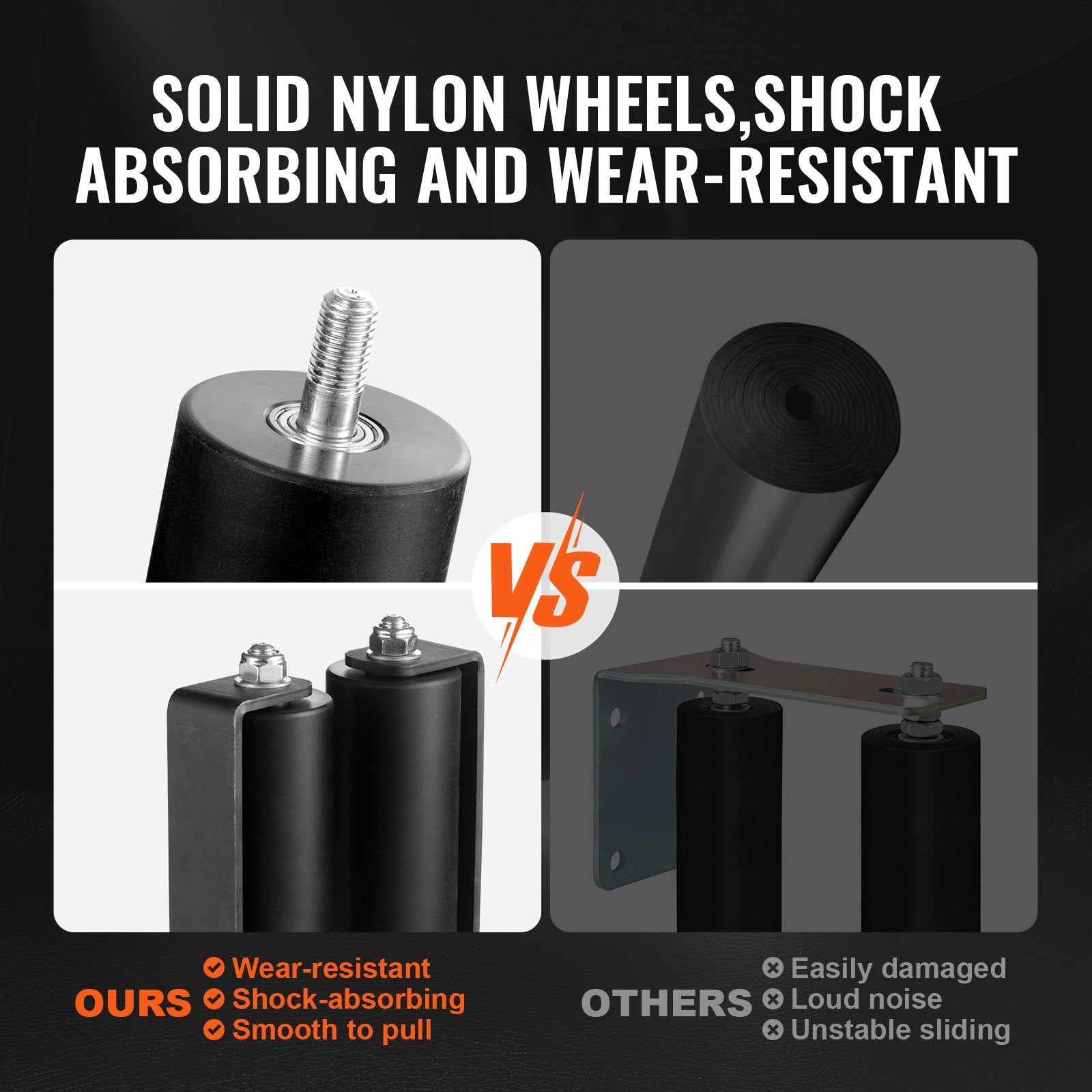 Slitstarka nylonhjul: De massiva nylonhjulen med hög densitet minskar inte bara spårslitaget utan förlänger också avsevärt livslängden på din skjutdörr, vilket minimerar underhållsfrekvens och kostnader.
