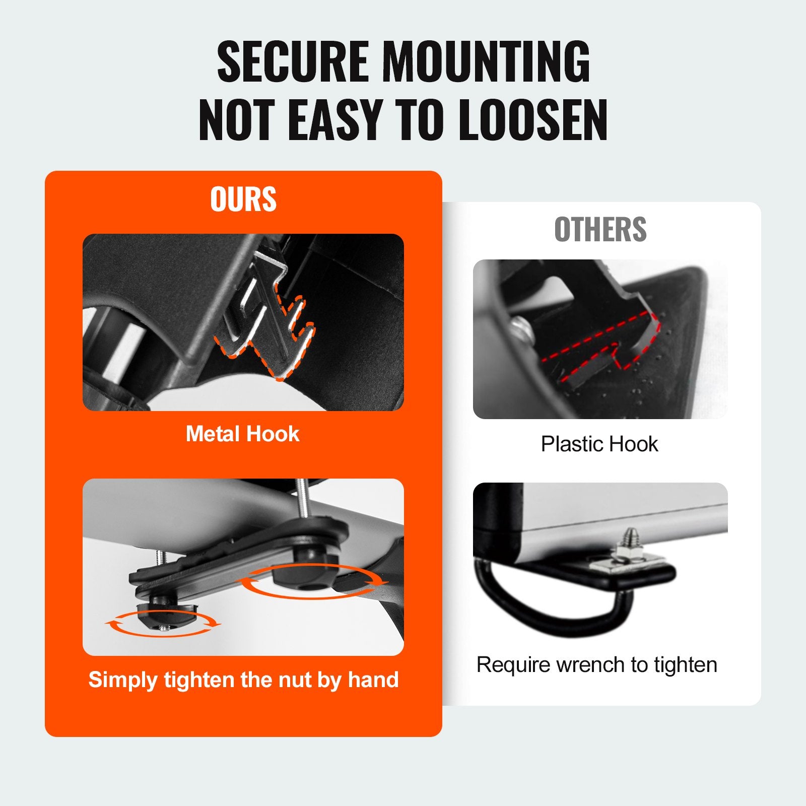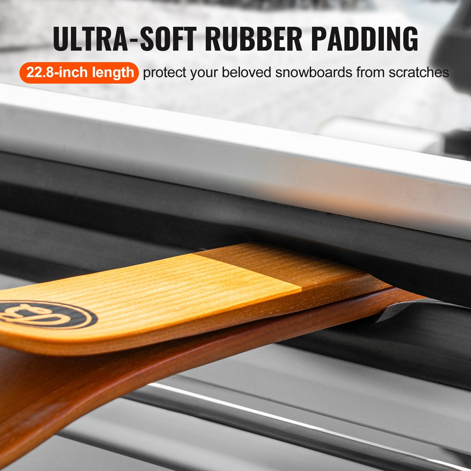 Stabilitet på språng: Håll din skidutrustning säker med VEVOR skidtakräcke. Vår 22,8-tums förlängda och tjocka gummistoppning skyddar effektivt din älskade skidbräda från repor och minskar vibrationsljud under transport, vilket säkerställer en mjuk och tyst körning.