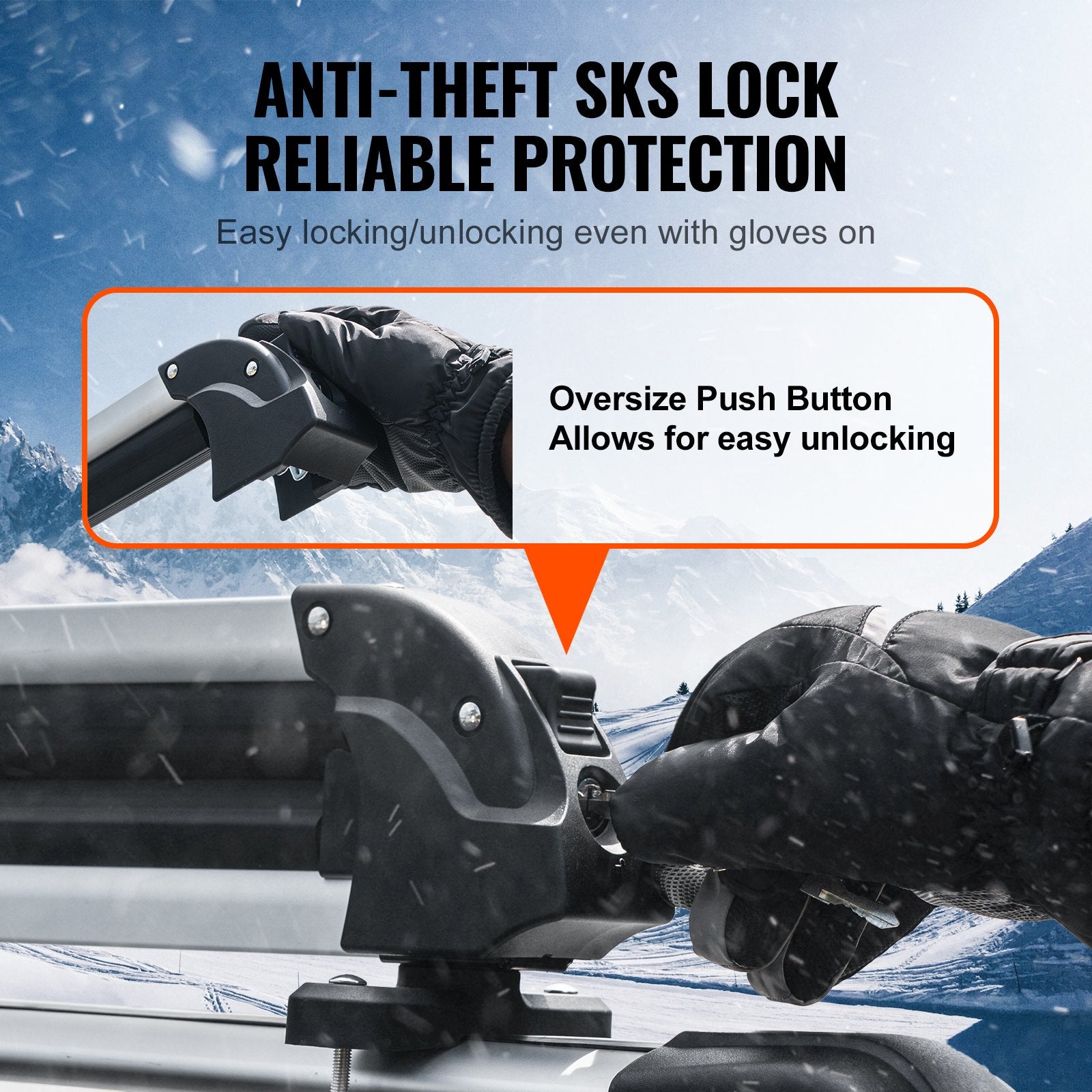 Gear Up, Ski On: VEVOR takräcke för skidor och snowboard, som mäter 31,7 tum (805 mm) långt, rymmer utan ansträngning upp till 6 par skidor eller 4 snowboards, vilket optimerar ditt fordons takutrymme samtidigt som förvarings- och transportbehoven tillgodoses.