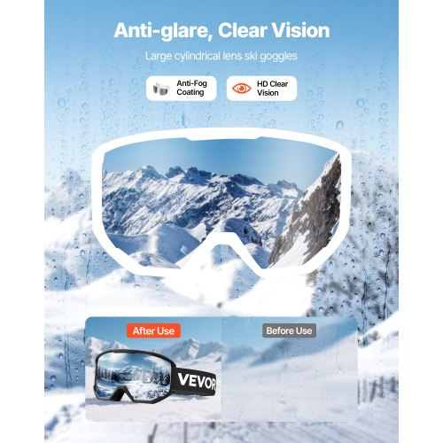 OTG-bågedesign: De breda snöglasögonen passar de flesta glasögon upp till 11,5 x 6,3 cm utan tryck. De sitter tätt utan att förskjutas, vilket ger dig en bred, fri sikt hela dagen.