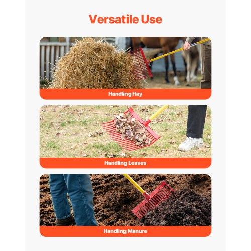 Mångsidig användning: Denna gyttjegaffel är idealisk för att hantera stora högar av löv och barr, och är även lämplig för att flytta täckmaterial, flis, gödsel, hö och mer. Den är dock inte lämplig för grävning. Från löv till halm kan den hantera en mängd olika uppgifter utan ansträngning.
