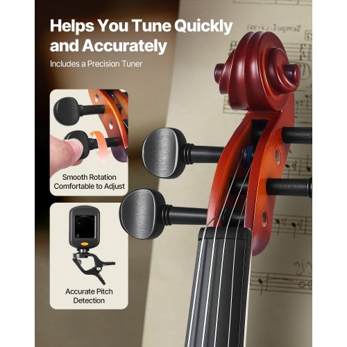 Enkel stämning: En stämapparat medföljer fiolen, med exakt hög detektering för att säkerställa att varje stämningssession uppnår den perfekta tonhöjden. Oavsett om du är nybörjare eller professionell artist kommer du enkelt att bemästra stämningsteknikerna och förbättra din spelupplevelse.