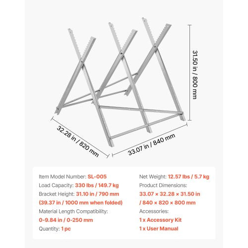 Hållbara detaljer: Hela arbetshästen är tillverkad av högkvalitativ metall, rostbeständig även i fuktiga utomhusförhållanden. Den tål utomhusexponering och tung användning, vilket gör den till ett pålitligt val för träbearbetning och arbete på byggarbetsplatsen.