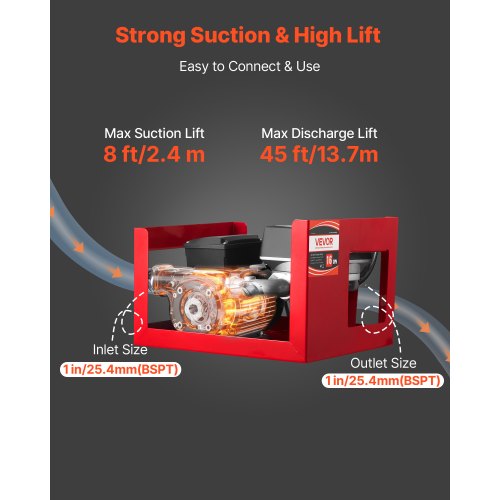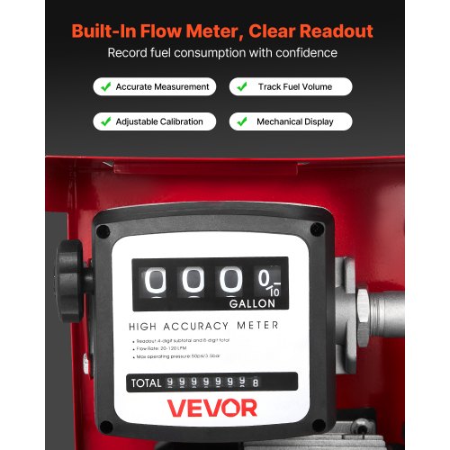 Snabb bränsleöverföring på 16 GPM: Denna bränsleöverföringspump levererar ett maximalt flöde på 16 GPM (60 L/min), ett maximalt sug på 2,4 m och ett maximalt lyft på 13,7 m. Perfekt för tankning av tunga maskiner, stora bränsletankar och utrustning på byggarbetsplatser.