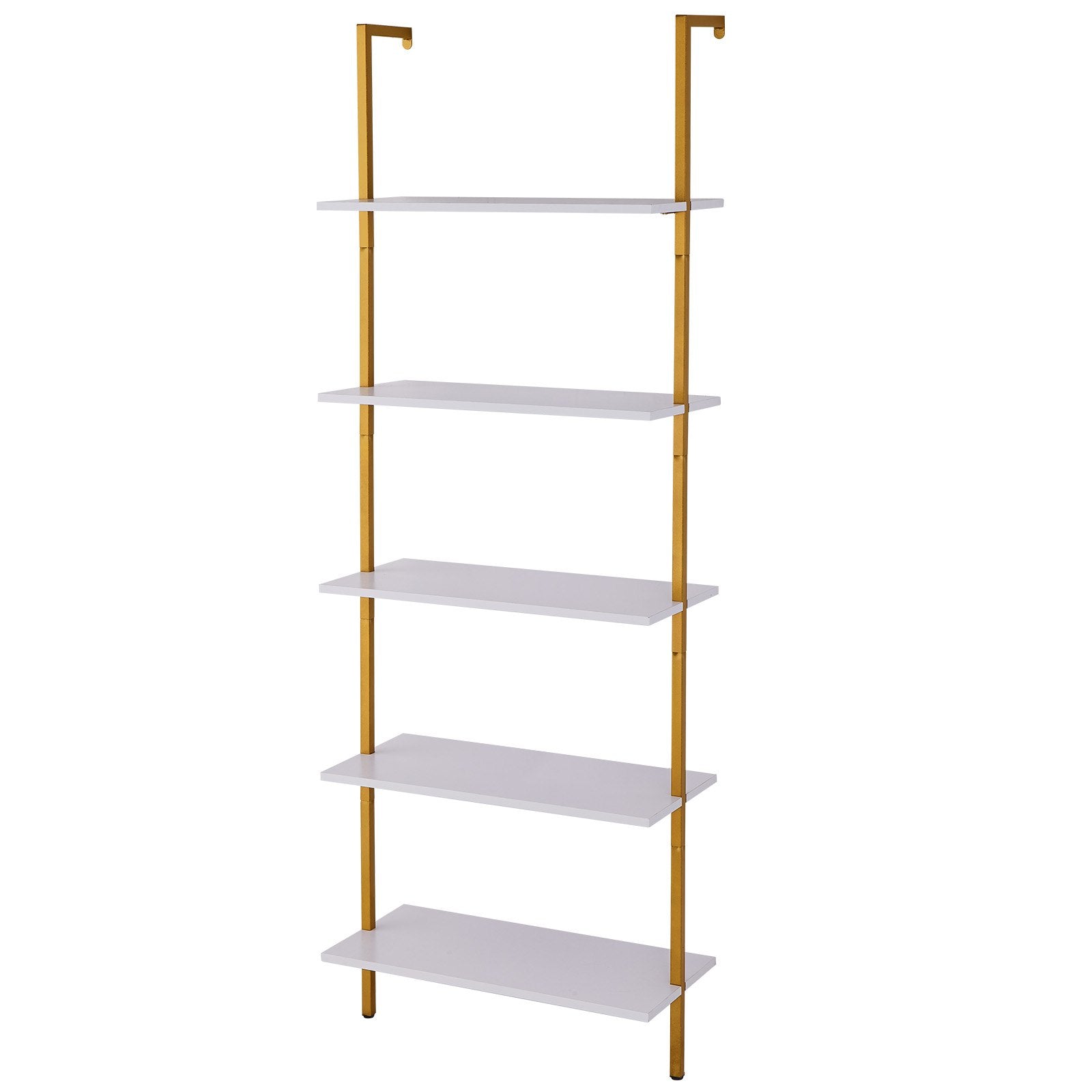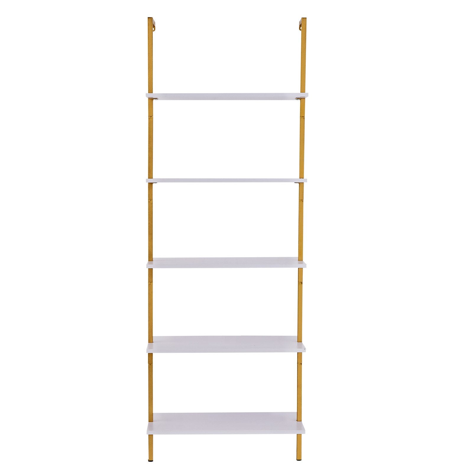 Industrial Square Pipe Hylla 5-vånings 24x11,8in Väggmonterad Guld Vit