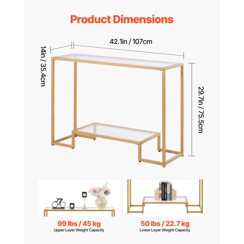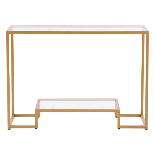 2-vånings glaskonsolbord rektangulärt soffbord med tippskydd gyllene