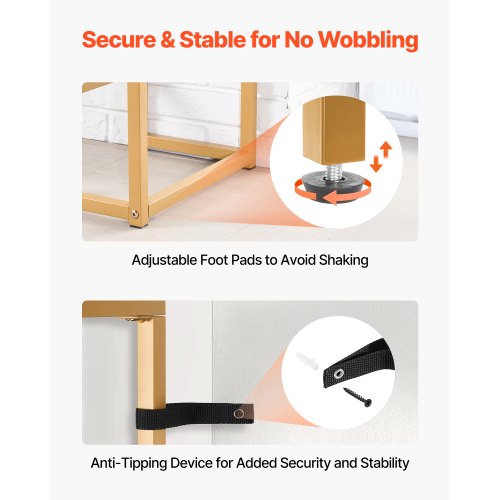 Robust och pålitlig: Den 2 cm tjocka järnramen stöder upp till 45 kg på den översta hyllan och upp till 22,7 kg på den nedre hyllan. Den är byggd för att hålla länge och ger pålitligt stöd för böcker, dekorationer och mer utan att de böjs.