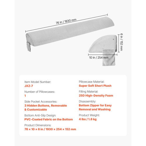 Högkvalitativt 25D-skum: Tillverkat av mjukt, elastiskt 25D-skum med hög densitet, vilket ger bekvämt stöd för huvud och nacke. Dess återfjädring säkerställer att huvudgavelkudden behåller sin form efter upprepad användning. Obs: Låt den vila i 48 timmar för att helt återställa formen efter uppackning.