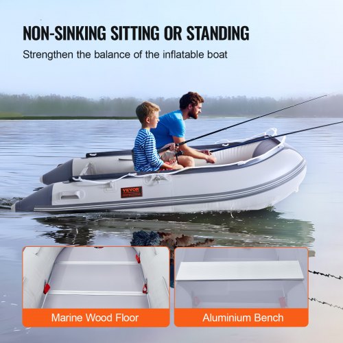 Förbättrad stabilitet: Tillägget av det marina trägolvet och den justerbara breda aluminiumsitsbänken på den uppblåsbara båten säkerställer en jämn viktfördelning och förhindrar hängning, vilket ger en stabil bas för höghastighetskörning eller att stå upp för fisk.