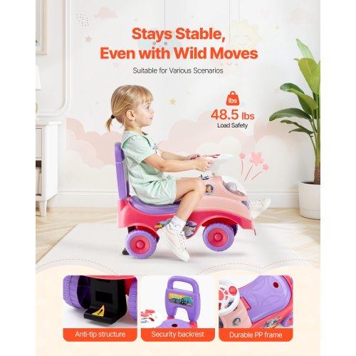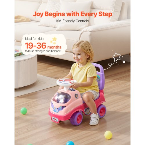 Åkbil för småbarn, Åkbil för småbarn 19 till 36 månader, Åkleksak med tuta och musik, 22 kg lastkapacitet, Förvaring under sätet, Gåvagn från fot till golv för småbarn pojkar flickor, Rosa | EU