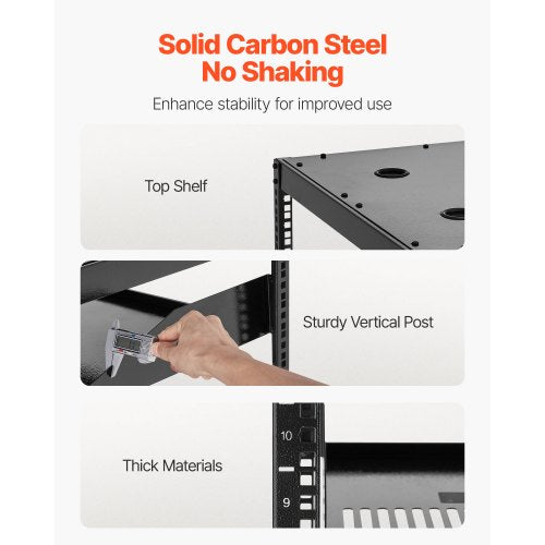 Hög viktkapacitet: Detta serverställ med öppen ram klarar upp till 226,8 kg golvstående och 90,7 kg väggmonterat. Tillverkat av kolstål med pålitlig svetskvalitet, är det byggt för att hålla länge och kan hantera en mängd olika enheter.