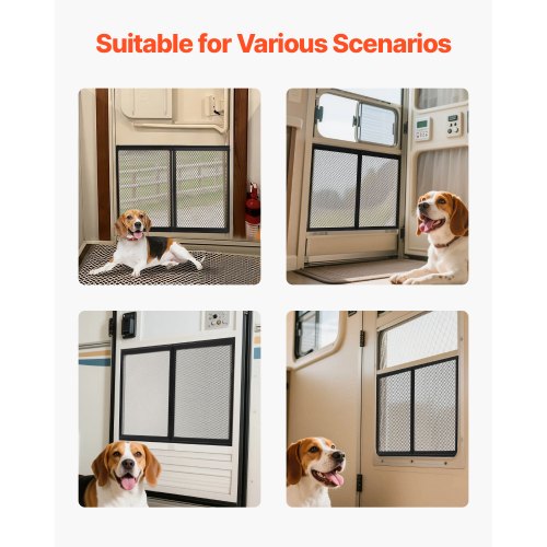 Mångsidig användning: Detta skärmskydd för husbilsdörrar är lämpligt för husbilsresor och ger extra skydd för husdjur inomhus. Det kan också användas i hem för dörrar som är anslutna till utomhusutrymmen, såsom uteplats- eller entrédörrar.
