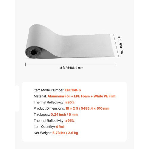 3-i-1-design: VEVOR 4 rullar, 5,49 m x 0,61 m reflekterande isoleringsrulle har en mångsidig 3-i-1-design: strålningsbarriär + isolering + ångkontroll, vilket säkerställer exceptionell termisk prestanda. Utmärkt strålningsbarriär håller ditt garage svalare på sommaren och varmare på vintern.