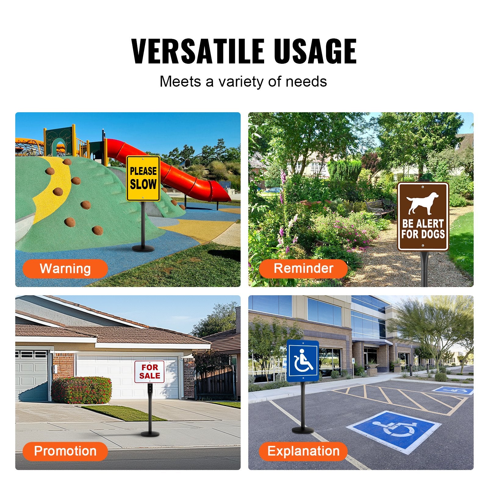 Robust och hållbar: Skyltstolpen innehåller 1 stolpe, var och en gjord av högkvalitativ gjutjärnsbas + stålstång, vilket säkerställer hög hållfasthet och hållbarhet. De är behandlade med korrosionsbeständig beläggning för att förhindra rost, vilket gör dem lämpliga för användning i regniga, snöiga eller varma sommarförhållanden.