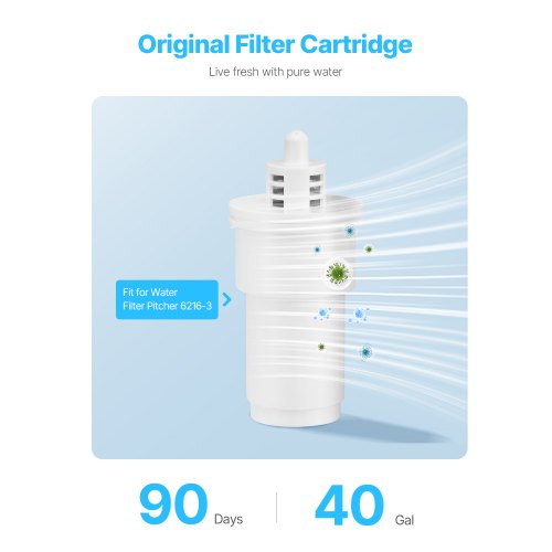Spara stort: Tre dricksvattenfilter ingår i paketet, som vart och ett renar 180 liter (motsvarande 302 flaskor) och håller i 3 månader. Spara tid och pengar med färre byten.