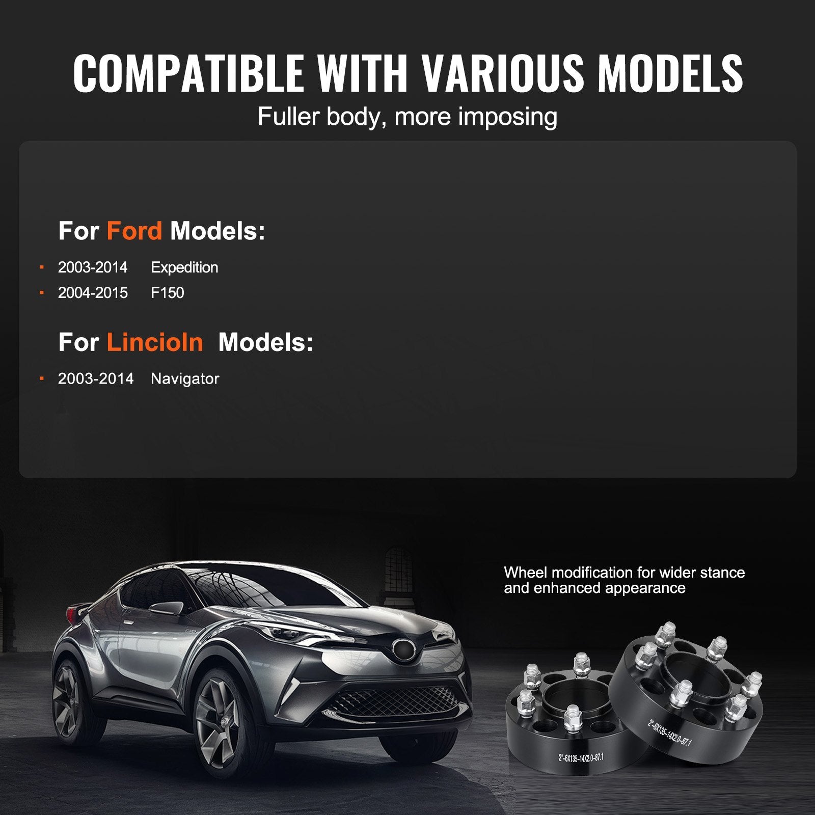 Bred kompatibilitet: Dessa hjuldistanser är kompatibla med många Jeep- och Fordfordon från 2003 till 2014, inklusive Ford (2003-2014 Expedition, 2004-2015 F150). Lincoln (2003-2014 Navigator).