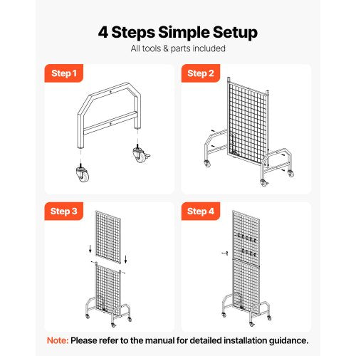 Robust konstruktion: Byggd med kraftigt stål, förstärkt ram och trapetsformad bas, stöder rutnätspanelen upp till 16 kg