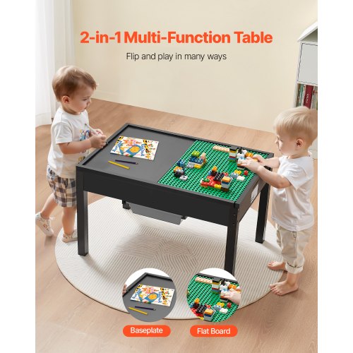 Multifunktionellt skrivbord: Detta lekbord har en vändbar design, perfekt för lek, pyssel och måltider! Med en byggklossyta erbjuder det oändlig underhållning. Dessutom håller inbyggd förvaring lekplatsen snygg och organiserad.