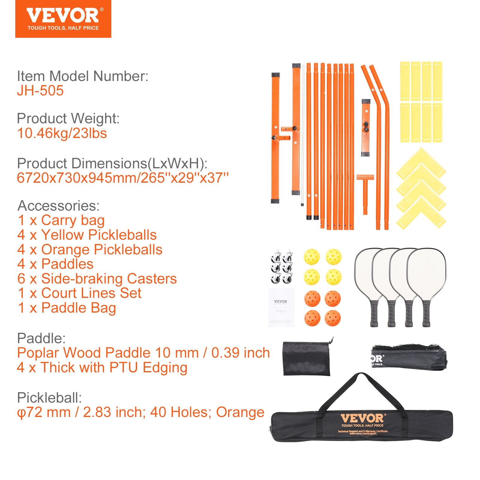 Pickleball-nätset, 22FT-förordningsstorlek, bärbart pickleball-system med väskor, bollar, paddlar, hjul och banlinjer, väderbeständig metallram och PE-nät, för utomhusuppfart på bakgården