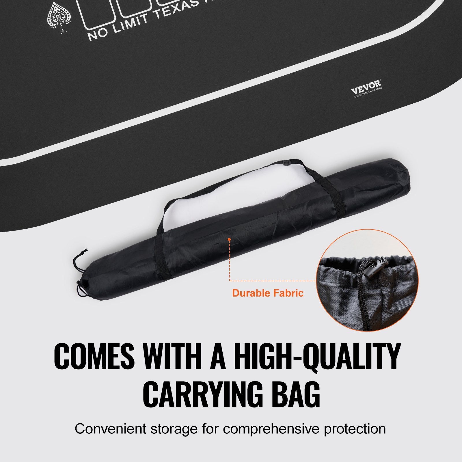 Lätt att förvara och bära: Denna pokermatta rullas lätt upp för bekväm bärbarhet när du är på språng för pokerspel. Vi tillhandahåller en förstklassig bärväska för att förvara din pokerbordsmatta, vilket sparar utrymme och håller den ren och skyddad.