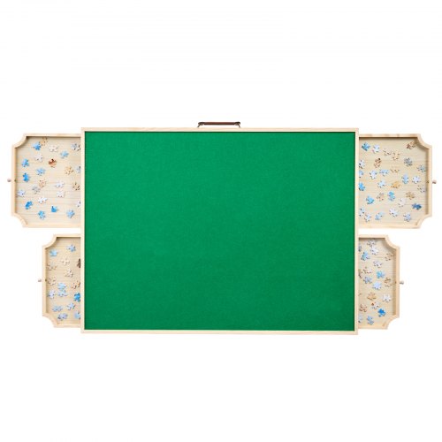 Användarvänlig design: Bordsskivan är utrustad med halkfri filt, vilket förhindrar att pusselbitarna lätt faller av. De fyra utdragbara lådorna gör det enkelt att förvara och organisera dina pusselbitar. Kardborrelåset kan säkert hålla de stängda lådorna på plats.
