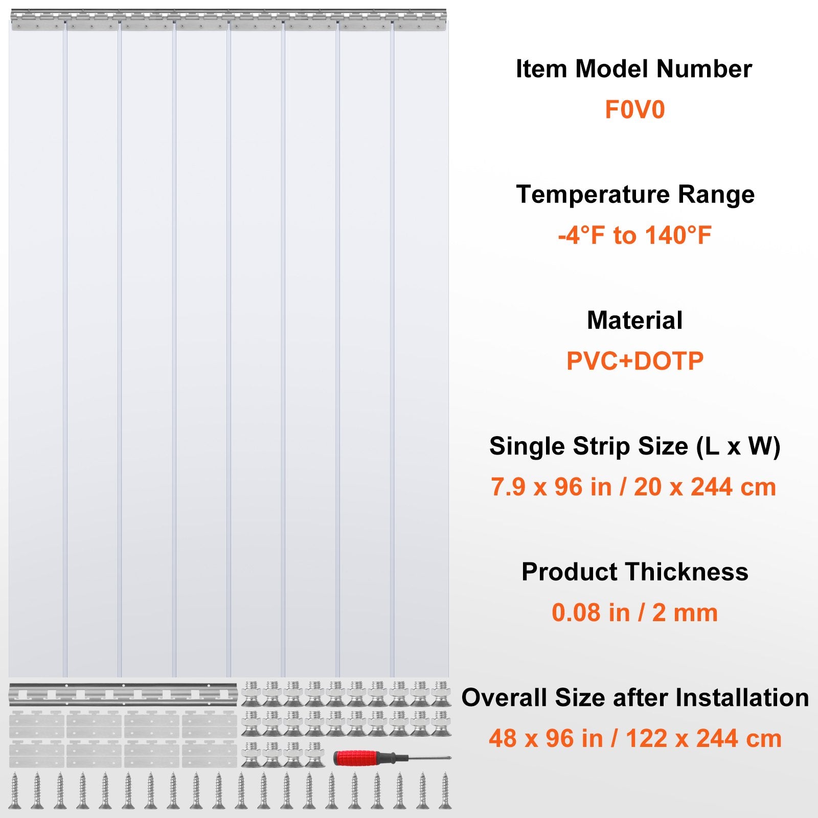 Slitstarkt PVC-material: Säg hej till vår PVC-bandgardin. Den är mjuk, elastisk och tillverkad för att hålla. Det finns ingen irriterande lukt här, och snacka om lätt att rengöra - din vardagliga diskmedel kommer att göra susen. Dessutom mäter den 48" x 96"/122 x 244 cm efter installation och är en tålig 0,08 tum/2 mm tjock.