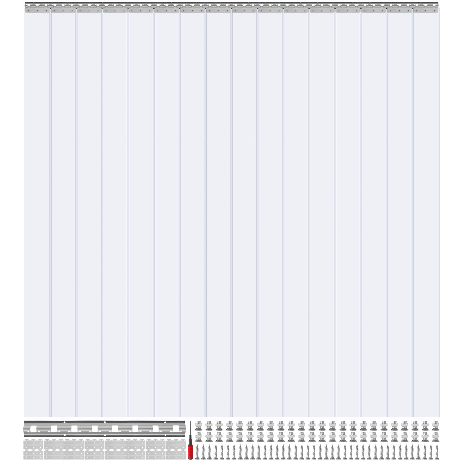 Slitstarkt PVC-material: Säg hej till vår PVC-bandgardin. Den är mjuk, elastisk och tillverkad för att hålla. Det finns ingen irriterande lukt här, och snacka om lätt att rengöra - din vardagliga diskmedel kommer att göra susen. Dessutom mäter den 96" x 96"/244 x 244 cm efter installation och är en tålig 0,08 tum/2 mm tjock.