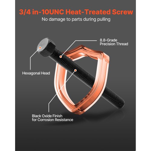 Robust konstruktion: Tillverkad av höghårt stål, tål vårt hjullagerborttagningsverktyg hård användning. Den värmebehandlade glidskruven ökar hårdheten. Skruven och muttern i klass 8,8 har precisionsgängor för robust kraftapplicering.