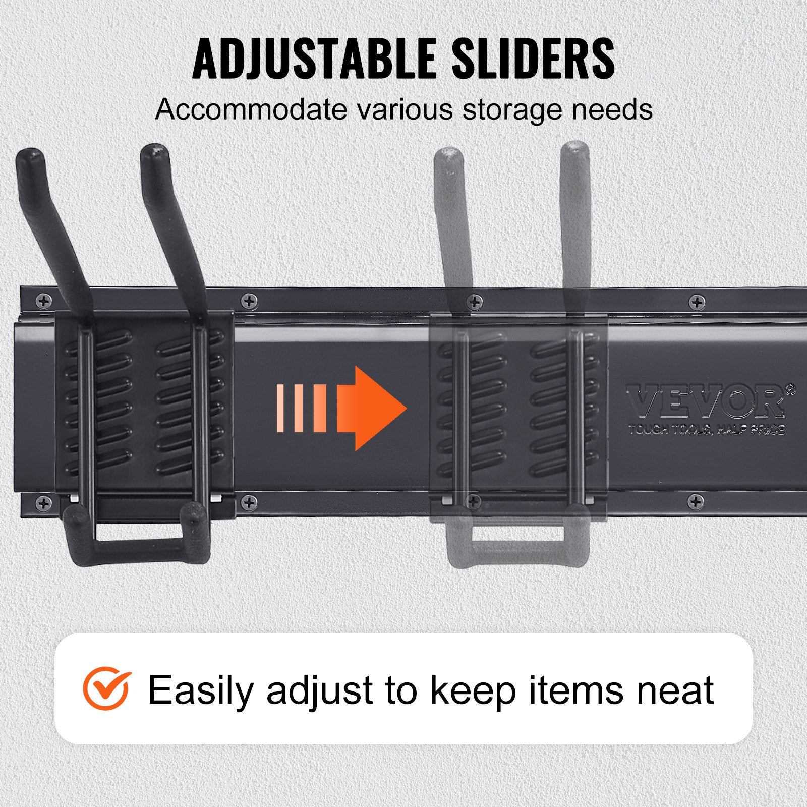 Garage Tool Organizer, 800 lbs Max lastkapacitet, Väggmonterad Yard Trädgårdsförvaringsställ Organisation Heavy Duty med 6 justerbara krokar och 3 skenor, för trädgårdsredskap, spadar, trimmers och slangar