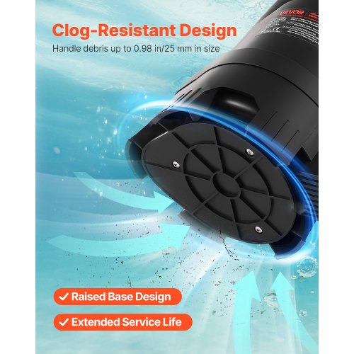 Hantera smutsigt vatten med skräp: En upphöjd bottenplatta och utloppsport gör att små skräp kan passera igenom. Denna anti-igensättningsdesign gör att avloppspumpen går smidigt även i smutsigt vatten.