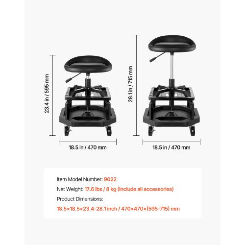 Vattentät sittdyna: Denna arbetspall har en bred, mjuk skumdyna för ökad komfort. Den vattentäta PU-läderytan motstår oljefläckar och är lätt att rengöra. Samtidigt ger ryggstödet extra stöd för ländryggen, vilket gör den idealisk för garage, vägkanter och reparations- och städjobb inomhus/utomhus.