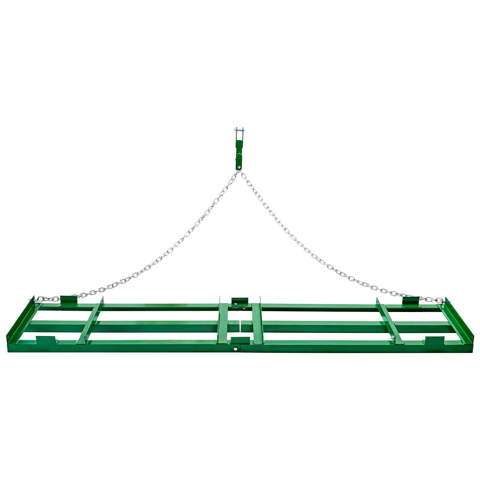 Bred räckvidd och effektivitet: Med sin 8 fot bredd hanterar denna släpharv effektivt stora ytor i en enda passage, och jämnar ut jord, gräs, grus och stenar. De medföljande tvärbalkarna ger extra vikt, vilket förbättrar utjämningseffektiviteten. Den är idealisk för gårdar, gräsmattor och grusuppfarter och fungerar som en effektiv väghyvel.