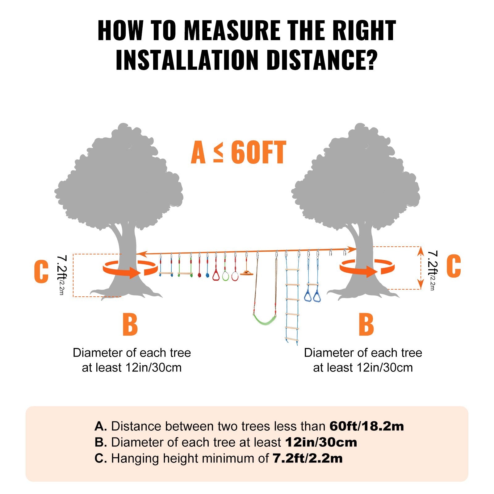 Rikligt med tillbehör: Ninja Warrior-hinderbanan inkluderar: 2x60 fot slacklines, 4 trädskydd, 1 klätternät, 1 klätterstege, 2 gymnastikringar, 2 monkey bars, 2 apnävar och 2 gungor. De olika tillbehören är perfekta för att träna olika styrkor hos barn. Denna produkt kommer också med en förvaringsväska för din bekvämlighet under picknick.